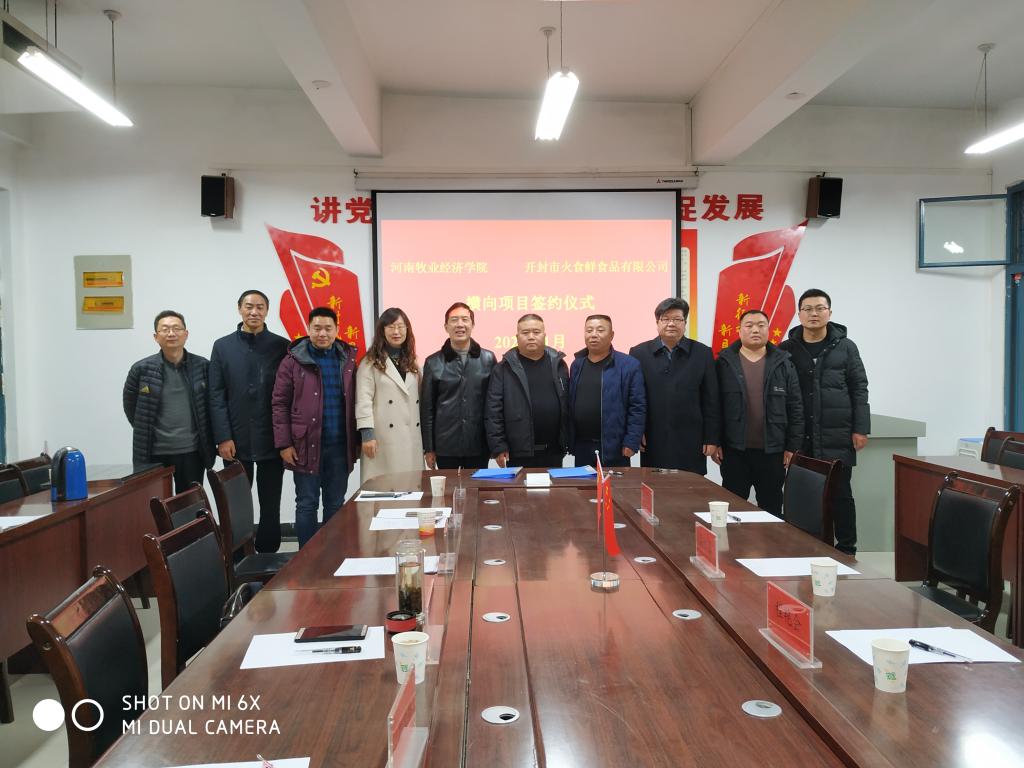 2020年1月10日“农产品功能性物质提升食材品质关键技术研发”横向项目在生工楼A426会议室签订,此项目是公司与开封市火食鲜食品有限公司签订100万元横向课题。公司科学技术处处长邱国鑫、食品与生物工程公司党委书记赵安勇、经理潘春梅、副经理郝修振,项目负责人邹建博士和项目组主要成员参加了本次签约仪式。