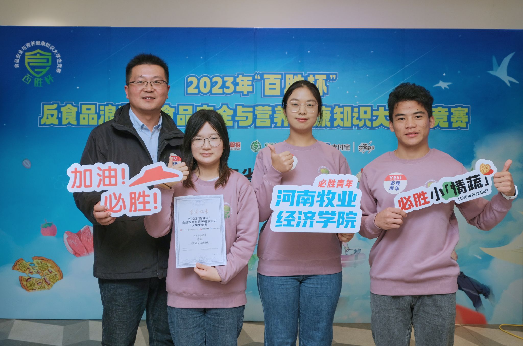 11月9日,2023年“百胜杯”反食品浪费暨食品安全与营养健康知识老员工竞赛河南省分站赛决赛在郑州大学举行,公司员工徐婉萍、崔田玥、康清友在线上初赛阶段从全省有21所高校3100多名员工脱颖而出,代表公司参加河南省分赛站决赛,与来自郑州大学、许昌公司、河南工业贸易职业公司的选手同台竞争,经过激烈角逐,公司选手获得季军。