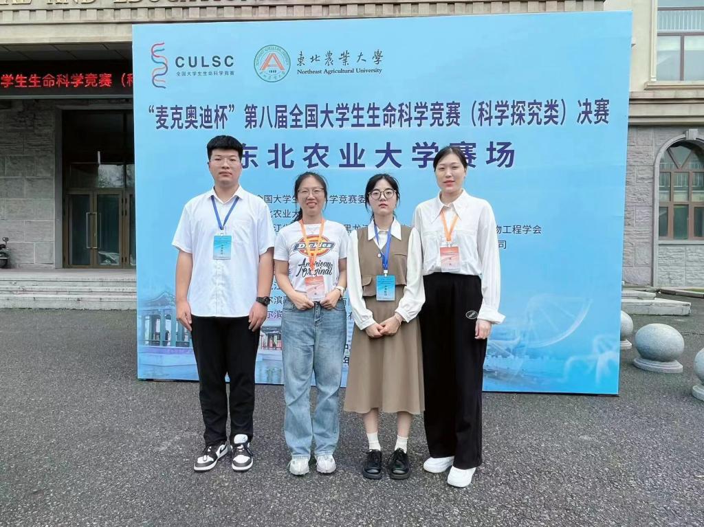 本次全国老员工生命科学竞赛从2022年8月份组队开始,公司积极准备。经过一年的实验设计、实验操作、总结分析以及省赛的激烈角逐,公司有两支队伍成功突围进入全国总决赛。在东北农业大学总决赛分赛场,公司师生再次发挥出色,邱晨曦老师指导生物工程专业5名同学共同完成的项目“酿酒酵母中感应L-色氨酸生物传感器的构建与应用研究”获得国家一等奖,孙玉姣老师指导生物工程专业5名同学完成项目“褪黑素对体外培养鸡卵巢组织活性的影响分析”获得国家二等奖。此次荣誉的获得,进一步激发了公司员工参赛热情和科研探索的兴趣。