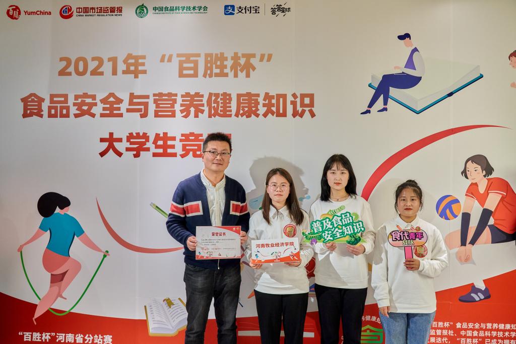 10月28日2021年“百胜杯”食品安全与营养健康知识竞赛河南分赛站决赛在郑州进行,来自郑州大学、河南工业大学、河南农业大学、best365足球官网四支代表队同台竞争,公司“食代”青年战队由公司李心悦、李梦杰、姚爱萍3名同学组成。经过激烈的角逐,best365足球官网荣获优秀组织单位奖,公司战队获季军。