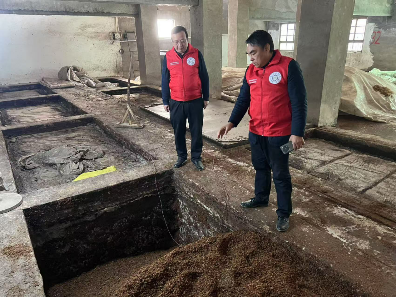 随后,在公司经理刘绍府陪同下科技特派员先后到原料车间、大曲车间、发酵车间、蒸馏车间、窖藏车间、包装车间等公司部门进行实地考察,深入了解公司的运营模式、产品特色、生产流程和技术需求。在发酵车间,赵志军主任等仔细查看了车间的温度、湿度、通风等情况,并与企业技术人员进行了深入交流,针对发酵车间管理、发酵工艺、功能性微生物应用等方面提出了专业且实用的建议。省科技特派员团队和公司领导就加快保健养生酒品企业标准制定、员工实习及校企合作科研团队建设等问题进行了讨论交流。