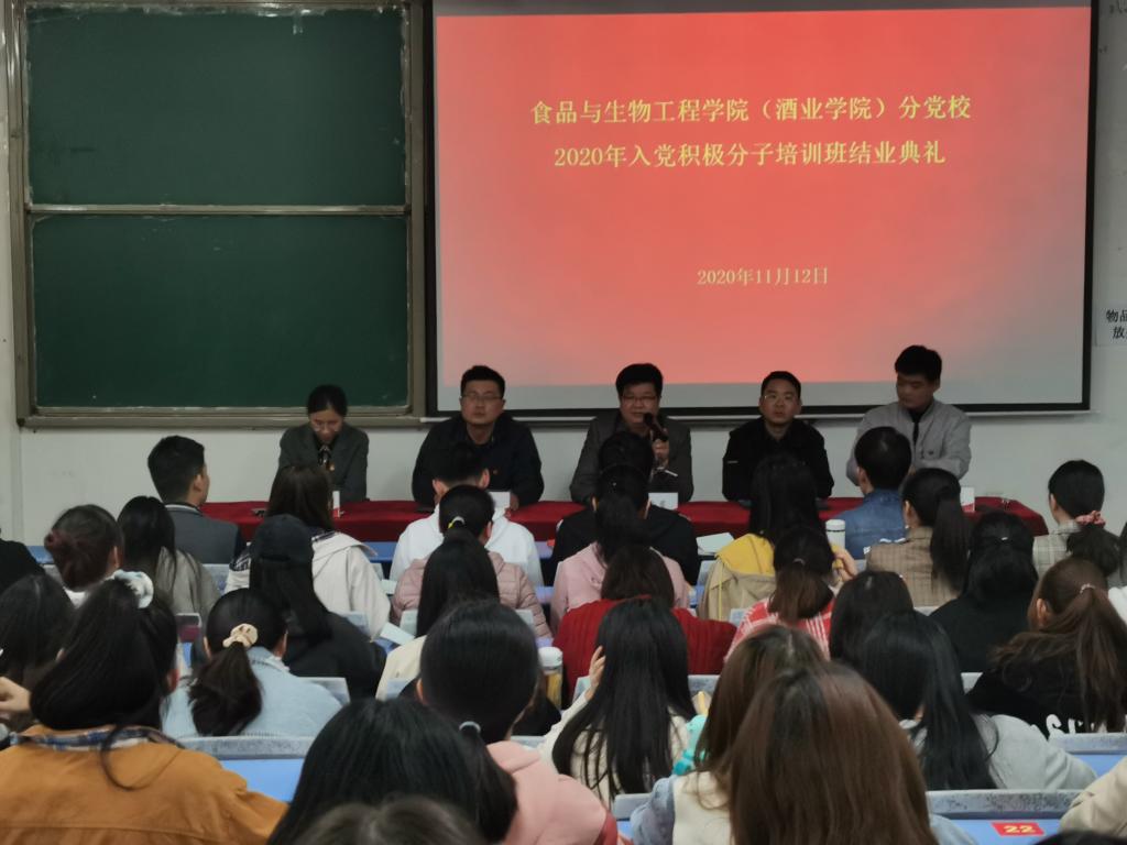 11月12日下午,best365足球官网分党校在1号教学楼合303教室举办了2020年入党积极分子培训班结业典礼,食品与生物工程公司党委书记赵安勇,公司党委副书记赵贺然、院团委书记、员工第三党支部书记马永生,院团委副书记、员工第二党支部书记杨增光,员工第一党支部书记高凤阳出席会议,本次培训班所有参陪学员参加会议,会议由杨增光主持。