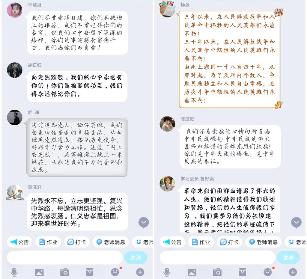 烈士忠魂千秋在,革命精神万代传。为缅怀革命先烈,铭记革命历史,进一步落实“立德树人”根本任务,大力弘扬爱国主义精神,引导师生心怀感恩、珍惜生活,清明节期间,公司组织师生积极开展了“网上祭英烈”活动。