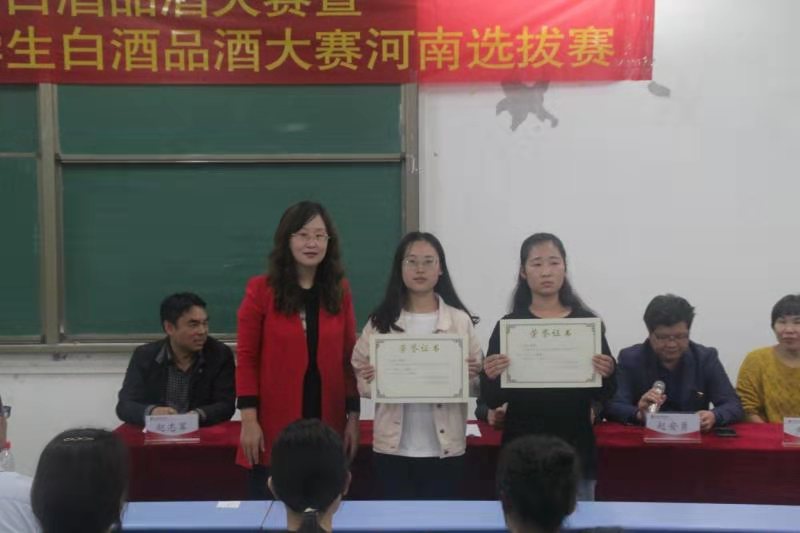 在颁奖仪式上,公司酒业公司经理潘春梅教授感谢河南省酒业协会举办本次比赛,感谢河南仰韶酒业的大力支持,希望广大学子不断锤炼专业技能,提高自己的专业素养,为豫酒振兴贡献自己的力量。河南省酒业协会副会长兼秘书长赵书民表示,本次大赛极具创新,对中国白酒的文化传承意义重大,有助于搭建白酒行业“校、企、政府、协会”互融平台,为发现和培养技能型人才提供了新渠道。他期望莘莘学子能够在全国老员工品酒大赛总决赛中再创佳绩。同时能够运用所学知识,向社会宣传理性饮酒、健康饮酒理念,为推动中国白酒走向世界,把中国白酒博大精深的民族文化传播向全世界而努力。