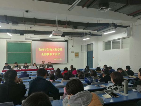 3月22日下午,食品与生物工程公司在龙子湖校区1号教学楼合403教室召开全体教职工大会,组织学习公司2018年全面从严治党工作会议精神。会议由原生物工程公司党政办主任郭宏伟主持。