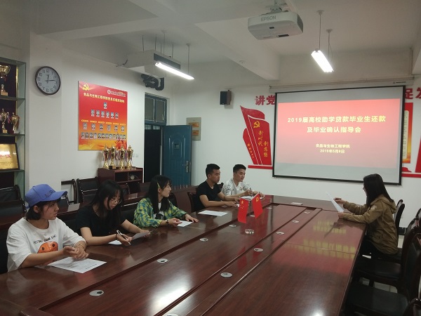 为帮助员工熟悉国家助学贷款及生源地信用贷款相关政策及还款流程,加强员工诚信教育,增强其诚信还款意识并树立感恩意识,推进公司助学贷款工作可持续发展,5月9日中午,食品与生物工程公司在生工楼A426会议室召开2019届高校助学贷款毕业生还款及毕业确认指导会,院资助专干辅导员李澎瀛及所有高校助学贷款毕业生参加了本次会议。
