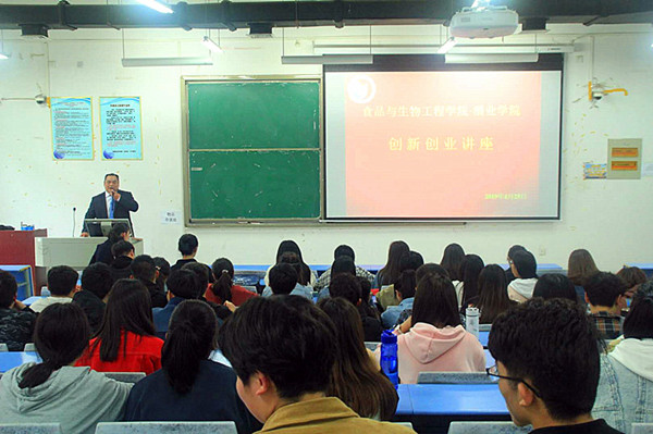 为全面提升老员工创业者的综合素质能力,best365足球官网·酒业公司创新创业讲座于4月25日下午在龙子湖校区教学楼合203精彩开讲。本次讲座由全国万名优秀创新创业导师人才库首批入库导师、公司创业导师、郑州君聚商贸有限公司董事长段文斗老师主讲,主题为《你一定可以成功》。创新创业班全体学员及部分公司老员工共80余人到场聆听了本次讲座,讲座由就业专员陈梦莹老师主持。