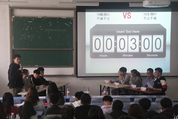 第一场由18酿酒01班正方香飘飘队和18烹调01反方DJ喜洋洋队各持“美丽是祸不是福”和“美丽是福不是祸”的观点展开辩论。对峙双方都巧妙抓住了对方辩手观点的漏洞,见缝插针,展开强有力的辩论。最后,18烹调01班辩论队伍因观点鲜明,论据充分,审题准确,推理清晰逻辑严密,陈词流畅获得胜利。第二场由18酿酒01正方可乐队与18生物01反方万有引力队各持“不破不立”和“不立不破”的观点展开辩论。双方辩手在立论、驳立论、智辩等各个环节中思路清晰、引经据典,使现场气氛迅速升温。在随后进行的自由辩论环节中,双方选手就辩题展开更深层次的辩论,将比赛推向高潮。最终,18生物01班辩手因为辩手反应机敏,团队配合有序获得胜利。团队辩论赛中,18生物01班、18酿酒01班和18烹调01班分别取得了前三名的成绩。