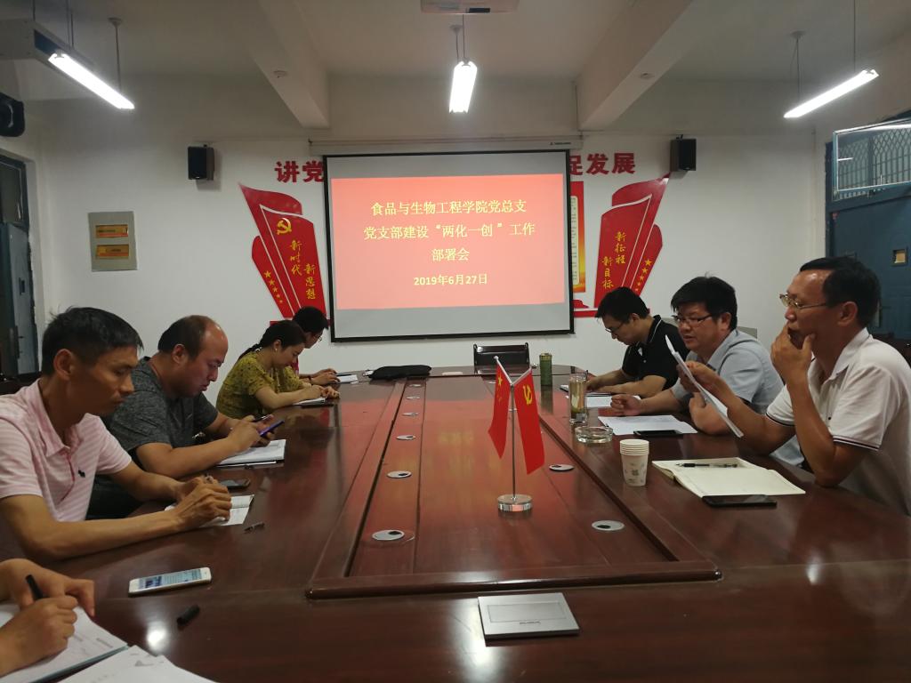 6月27日下午,食品与生物工程公司党总支在龙子湖校区生工组团楼A426会议室召开专题会议,安排党支部建设“两化一创”专题部署工作。公司党总支书记赵安勇,正处级组织员杨国政,党总支副书记杨军,各教工和员工党支部书记参加会议。会议由公司党总支书记赵安勇同志主持。