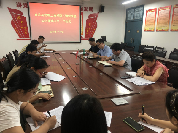7月19日下午5点,best365足球官网·酒业公司在生工组团A426会议室召开2019届毕业生工作会议,公司党总支书记赵安勇、党总支副书记杨军、正科级组织员李欣、毕业班班主任及全体辅导员出席会议,会议由杨军书记主持。