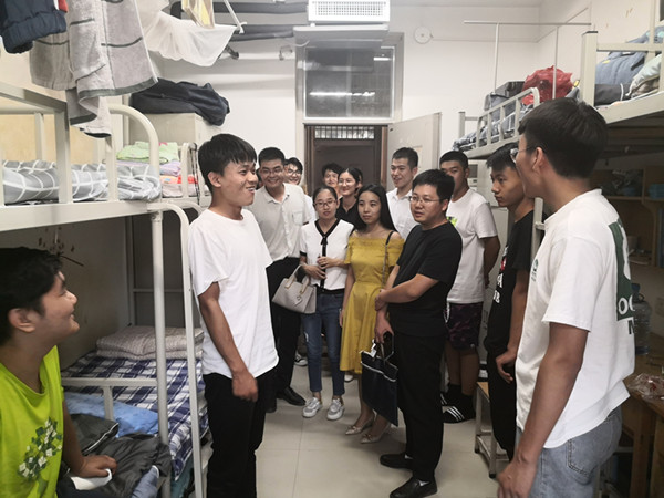 9月7日下午17时,各新生班辅导员老师到宿舍看望新生,详细了解新生报到后的生活情况,嘱咐他们注意安全,尽快融入公司的学习生活,新生们纷纷表示一定会遵守公司纪律,确保个人安全。