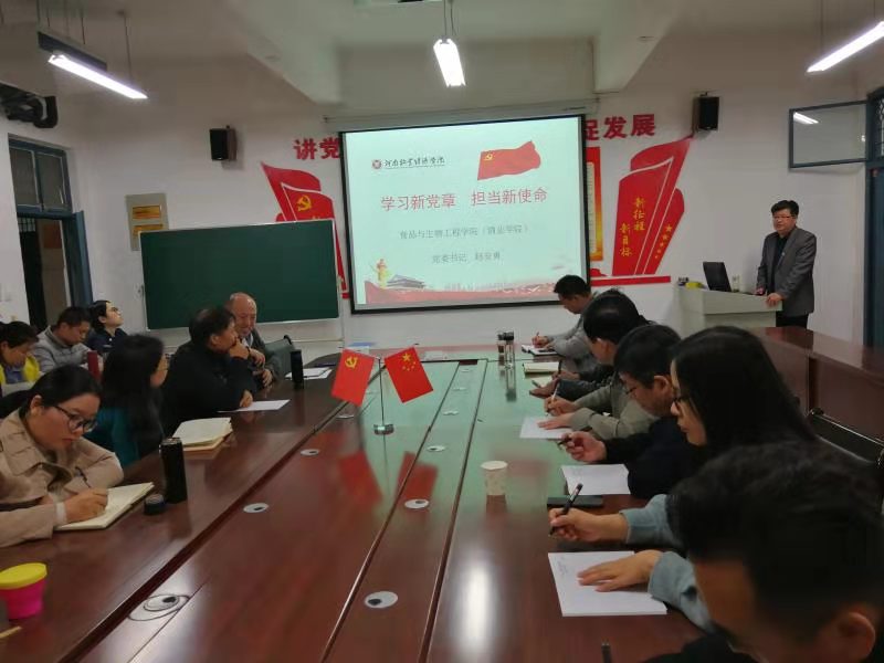 11月8日下午,食品与生物工程公司党委书记赵安勇在公司会议室为教工党员讲了一场主题教育专题党课,公司党委互联互通结对单位科研处党支部全体党员在邱国鑫处长带领下参加了学习活动。