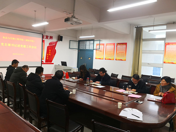 2019年12月20日上午,食品与生物工程公司党委在龙子湖校区生工组团楼A426会议室召开党支部书记述党建工作会议,公司3位教工党支部书记和3位员工党支部书记进行了集中述职,公司第一届党委委员参加了述职会。