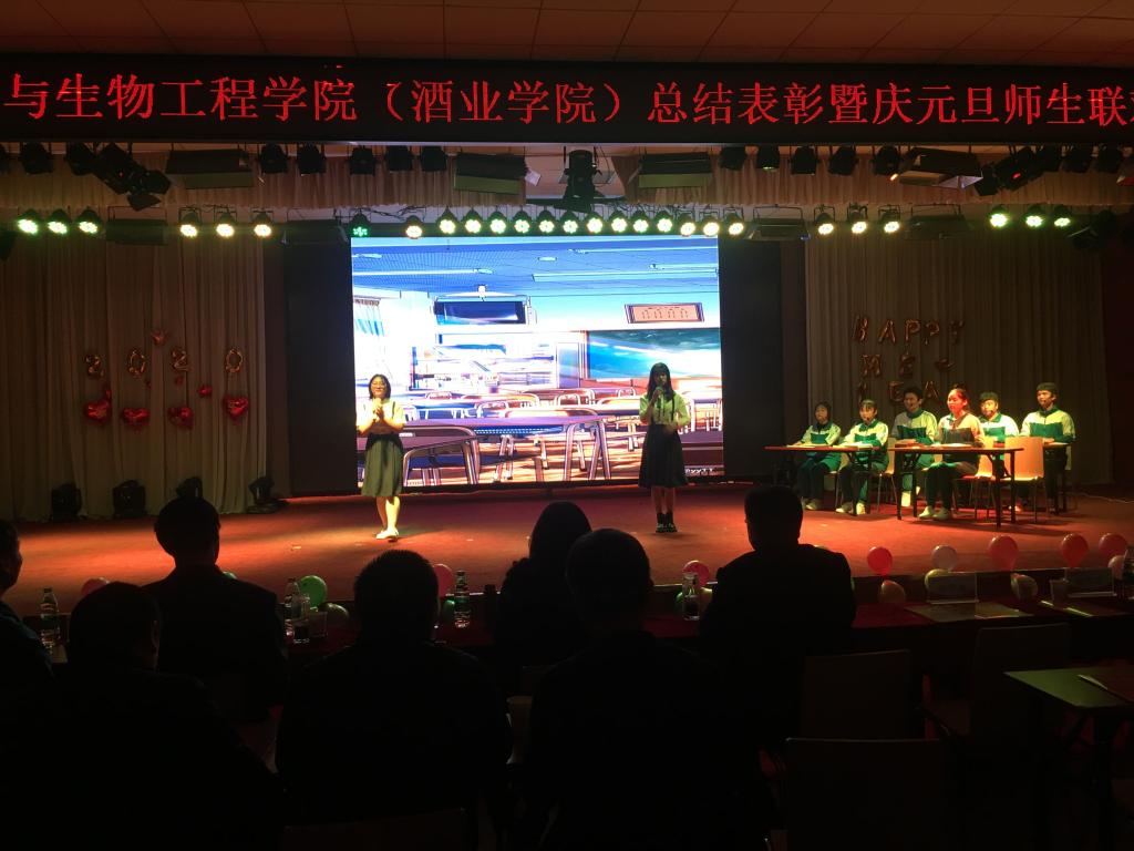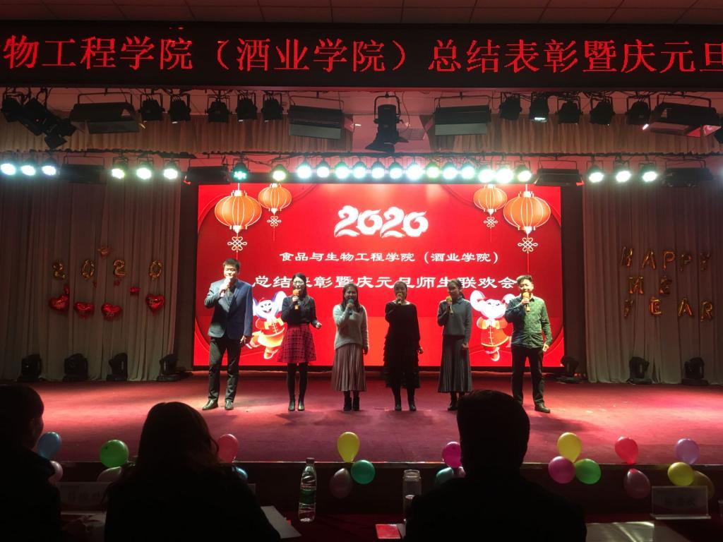 联欢会节目进行期间,穿插开展了2019年工作总结表彰。为了表彰先进,激励师生再创佳绩,公司分别评选了教学、科研、管理、教研室、实验室、员工、党务、团学会等工作先进个人予以表彰,并授予了“酿酒工程教研室”突出贡献奖,以表彰其在豫酒文化馆和豫酒科技创新平台建设、省级以上各项技能竞赛等工作中做出的卓越成绩。