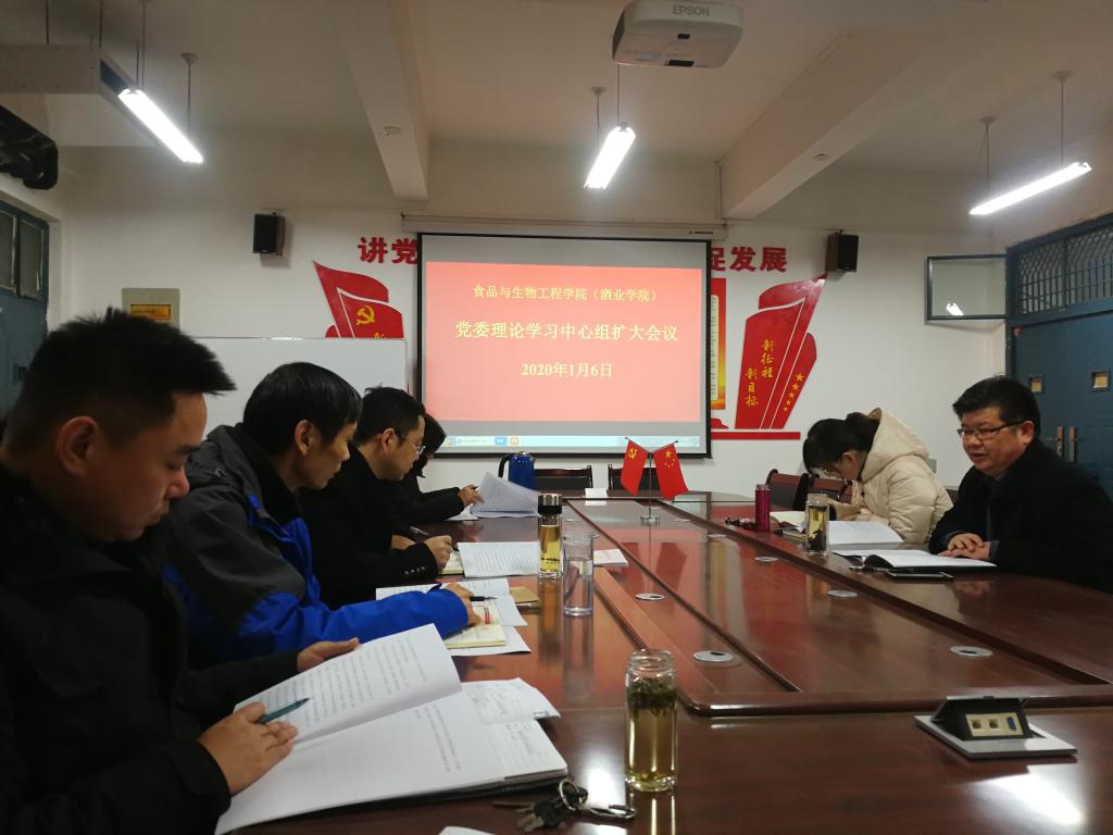2020年1月6日,best365足球官网(酒业公司)党委分别召开理论学习中心组扩大会议和全院教职工会议,专题学习贯彻公司第一次党代会精神。公司党委委员及各党支部书记和全院教职工分别参加了会议。