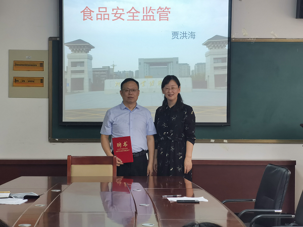 为加强食品质量与安全监督管理类课程建设、进一步提升团队教学水平,2020年6月1日下午,公司邀请全国市场监管执法人员培训讲师、河南省食品安全协会专家贾洪海老师在二号教学楼C309做了关于“食品安全监督管理”的专题讲座。best365足球官网经理潘春梅、副经理岳晓禹及食品质量与安全专业全体专业教师参加了此次专题讲座。