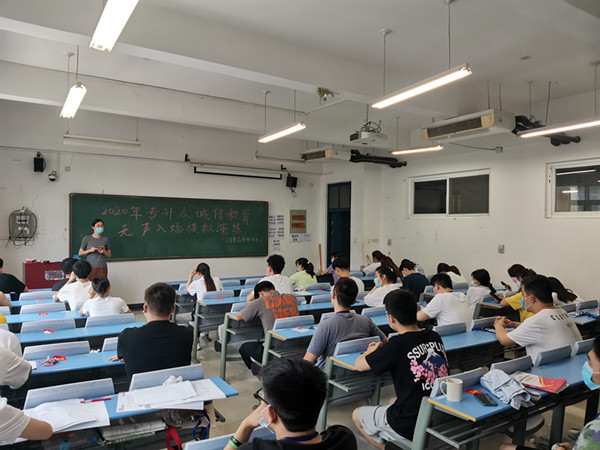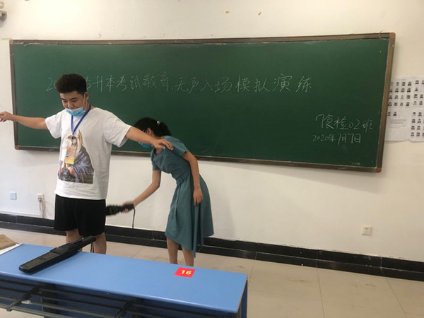 首先,带领考生学习《2020年普通高校招生考生诚信承诺书》、《best365足球官网2020届员工参加专升本考试应考工作方案》文件精神与要求,并再次强调考试期间的相关纪律与要求;其次,要求每位专升本考生关注人才招聘处微信公众号,方便考试结束后及时收到志愿填报、录取信息公示、后续手续办理等事项的通知;最后,专升本考生逐一接受老师的金属探测器检查,无报警声响方可进入教室。个别演练没通过的考生,及时更换合适的服装和鞋子,直至通过。