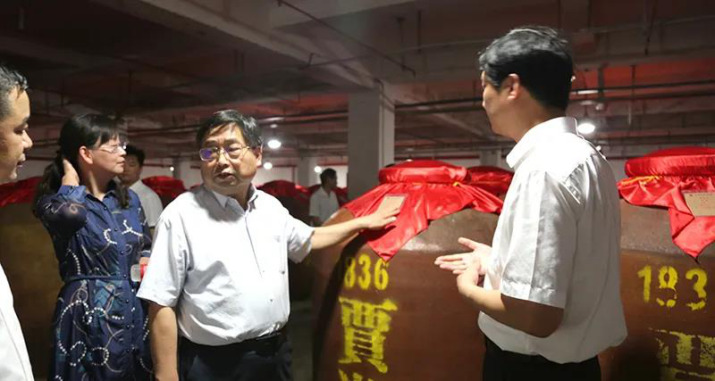 罗董事长一行先后参观了贾湖酒业科技研发中心、传统酿造车间、地下恒温酒窖、百年木海群、贾湖红馆、贾湖文化园等企业生产重要环节和文化设施。