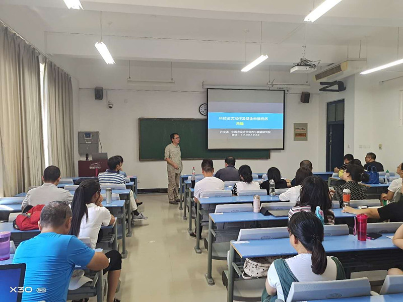 会上,许博士结合自身科研经历和带领团队的经验,从对待科研的态度、课题申报书的写作以及科技论文写作三大方面进行了深入讲解和指导。他首先告诫大家要培养自己的科研兴趣,要相信自己和团队,要有包容和谦逊的态度,脚踏实地、专注高效;其次,许老师分析了基金申报方面的一些关键注意事项和写作技巧,要正确看待基金申报中遇到的挫折和坎坷,要有屡败屡战的精神,重在参与,并时刻关注课题范围,使研究基础在坚持中逐渐强大;最后,他分别就论文题目、创新点、前言、材料与方法、结果、讨论、文献及摘要这几个方面的写作方法逐一进行了深入解析。