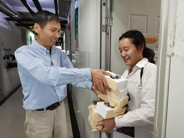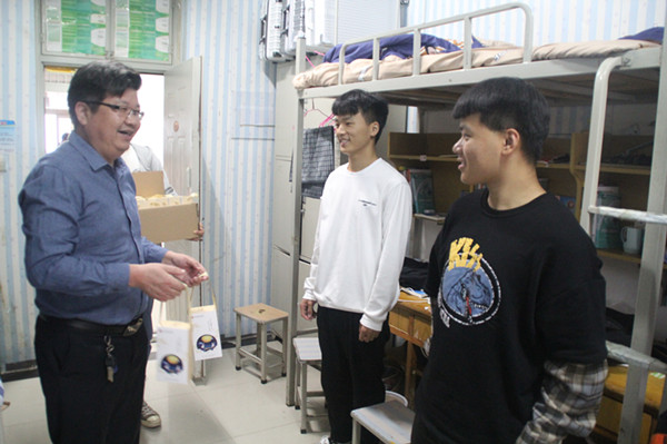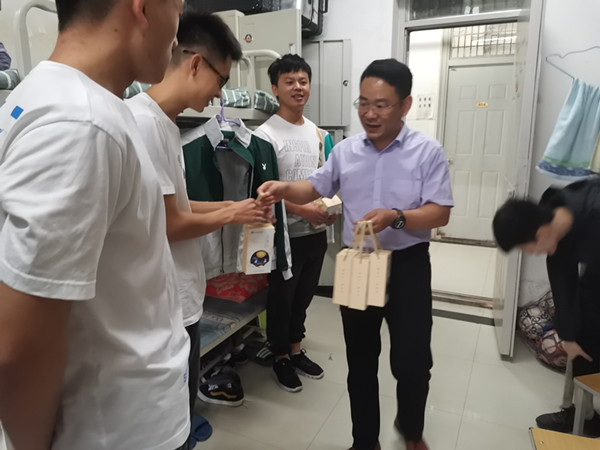 公司领导先后走进公司宿舍300余间,发放中秋月饼2300余份,转达公司的祝福,并带去全体老师的慰问。院领导与员工们亲切交谈,了解同学们的生活状态,向同学们送去节日祝福。党委书记赵安勇叮嘱同学们在节日期间要增强安全意识,筑牢疫情防控的思想堡垒,合理安排时间,度过一个安全温馨祥和的中秋佳节。