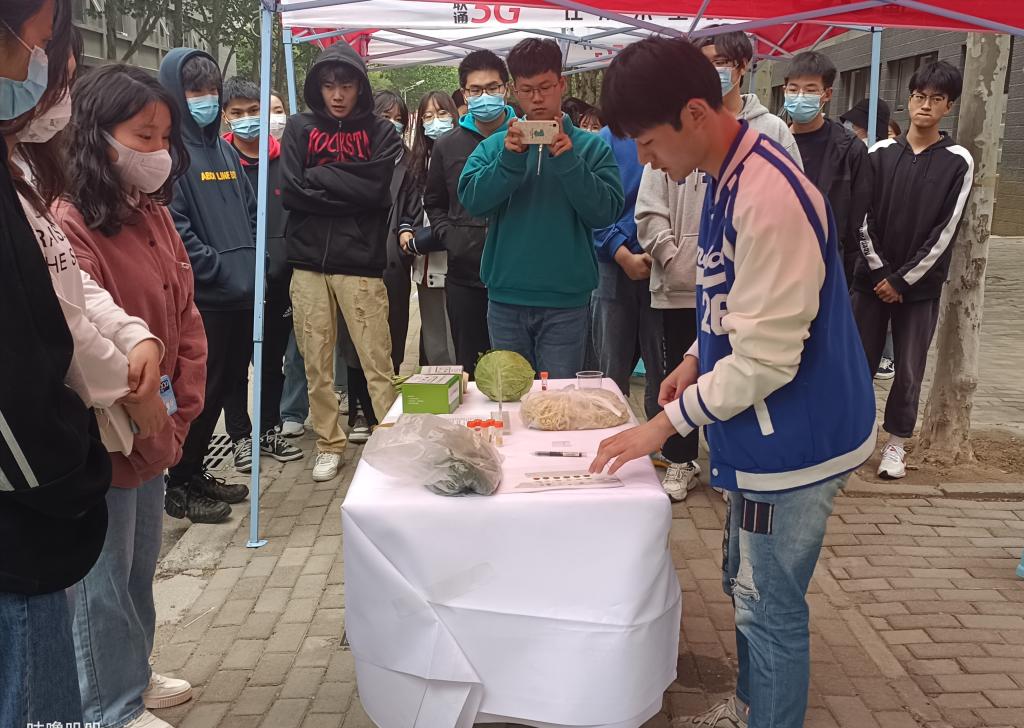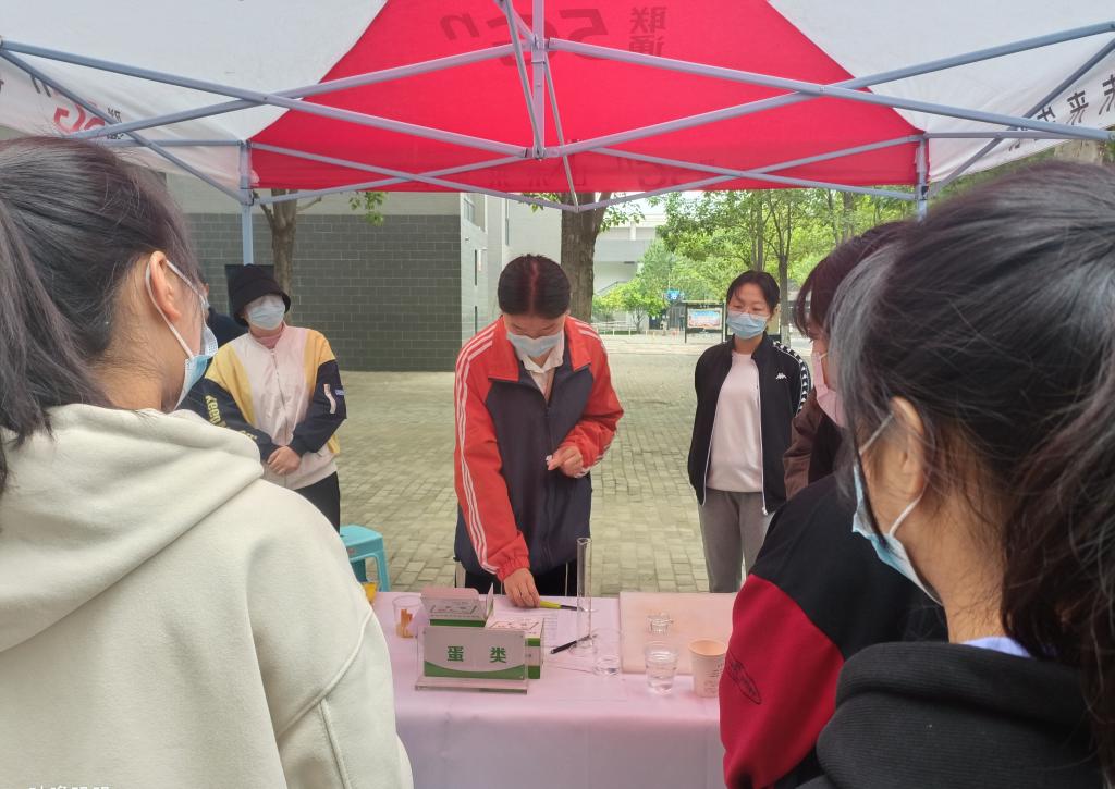 本次科普活动旨在宣传开科普食品安全知识及快速检测食品安全的方式防范,同时培养食品安全专业员工科普知识及实践操作能力。活动现场,食品安全专业教研室主任陈威风分别对肉类、乳品类、果蔬类、豆制品类食品的安全检测向同学们进行讲解和示范。从食品安全的重要性、各类食品的安全威胁到检测试剂的使用、观测,两位老师详细的向同学们进行展示和讲解。之后,现场同学们分组操作,相互配合进行检测,并对来往的同学进行食品安全知识讲解,活动现场同学们热情高涨,纷纷主动实践。一方面强化了同学们食品安全检测的实践操作,另一方面切实推进了食品安全知识的科普教育。