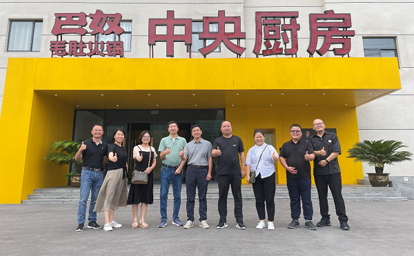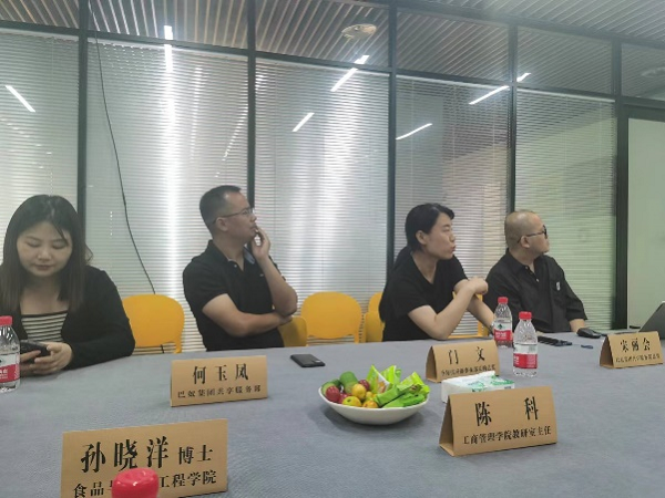 巴奴集团人力资源总监宋丽会女士、采购总监门文先生等热情接待公司老师,21届食生公司员工孙甜甜带领参观并详细讲解巴奴的仓库和寻根堂,校企面对面座谈时宋丽会女士详细介绍了巴奴集团发展历程、组织架构、企业文化、员工晋升通道、培训体系、核心技术等方面,采购总监门文先生分享了巴奴的产品主义。工商管理公司陈先锋副经理首先表达对巴奴集团疫情期间献爱心的感谢之情,颁赠巴奴集团捐赠证书,尚光辉主任和陈科主任提议管理和营销案例,胡燕博士、王宁博士和孙晓洋博士分享了预制菜制作技术合作要点。巴奴热切希望与公司深入地推进校企合作、吸纳高质量人才,力争早日将校企合作落地落实。公司老师通过参观和座谈进一步了解市场人才需求,可据此及时调整人才培养方案,满足业界对人才的要求,实现公司人才培养高质量发展。