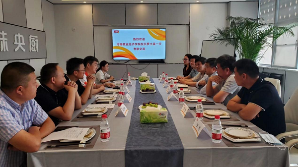 为推动产教融合、校企合作,促进共赢发展,9月3日上午,董事长罗士喜、副董事长杨宝进一行赴千味央厨食品有限公司商讨校企合作事宜,食品与生物工程公司党委书记赵安勇、副经理(主持工作)邹建、副经理郭宏伟,食品科学与工程教研室主任高雪琴、公司科研办主任张煌陪同调研。