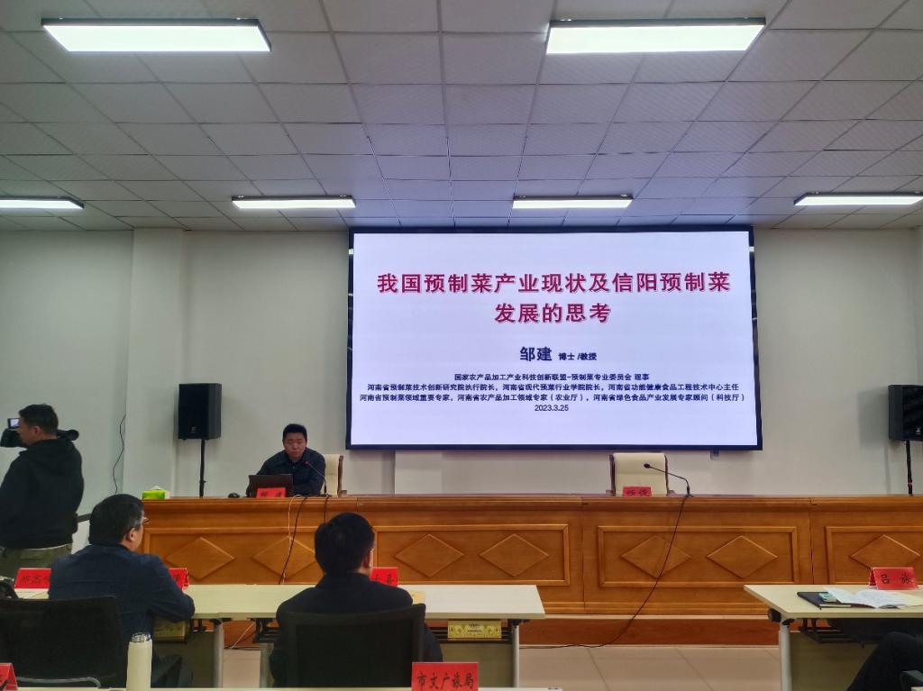 3月25号上午,公司邹建教授为信阳市各县区有关部门、信阳高校、信阳预制菜生产企业的相关负责人开展《我国预制菜产业现状及信阳预制菜发展的思考》专题讲座,会议由信阳市文旅局局长任俊主持,公司董事长罗士喜,市委常委、宣传部部长曲尚英,副市长吕旅参加了培训会。