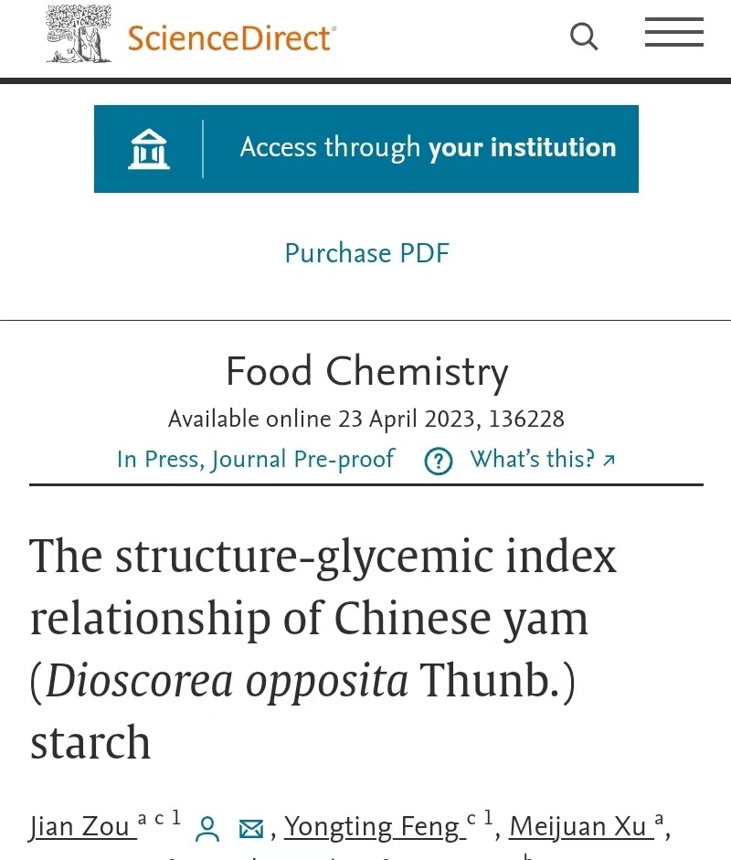 该研究成果主要聚焦河南本地特色农产品怀山药,利用其独特结构研究控制血糖升高的机理机制,并首次解析出其结构与血糖指数的关系,未来该研究成果可以有效应用到油炸裹粉类预制菜、蒸煮炖制类预制菜和功能性食材开发上,为高营养预制菜、特膳预制菜产品开发提供了创新方向。
