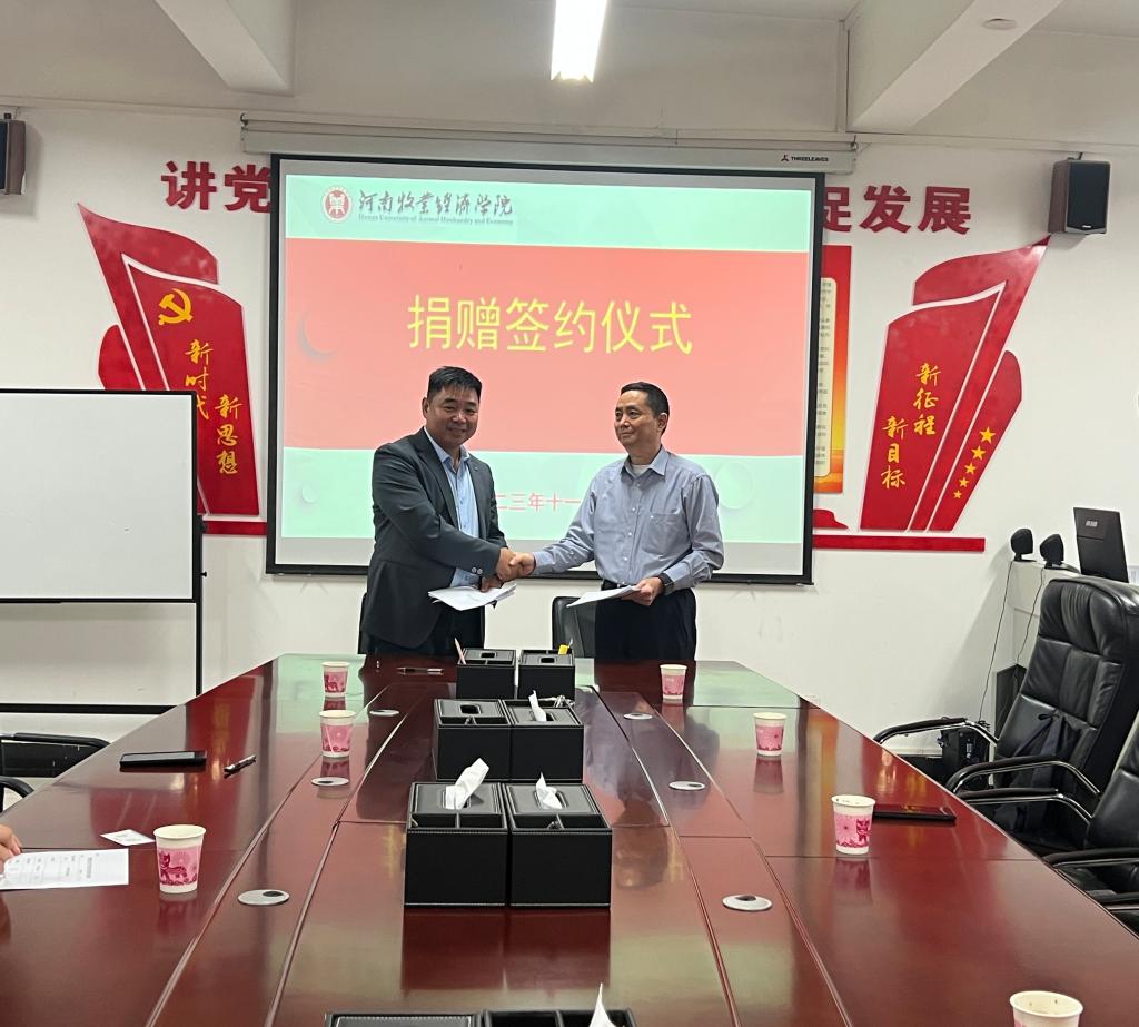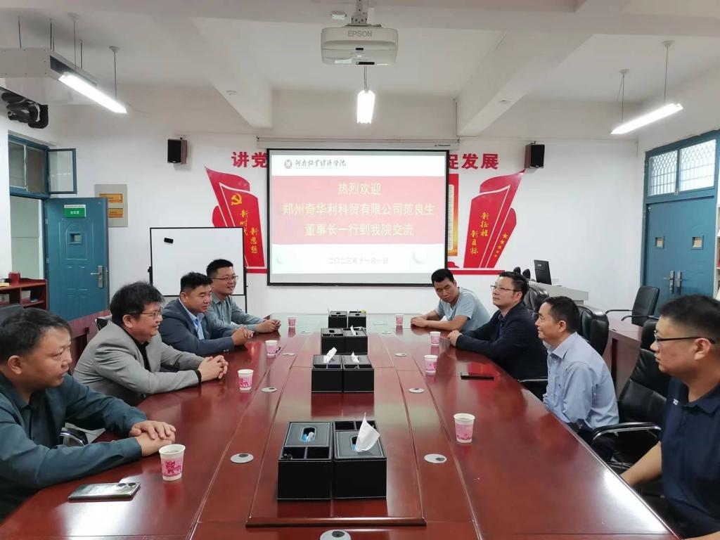 赵安勇对郑州市奇华利科贸有限公司董事长范良生一行表示热烈欢迎。邹建就公司的基本情况,公司专业设置,人才培养,产教融合等进行了详细介绍。范良生介绍了郑州市奇华利科贸有限公司发展历程、发展定位、产品种类、销售情况,并表示希望和公司进行深度合作,双方相互赋能,共同发展。座谈会上校企双方进行了“奇华利奖学金”签约仪式。