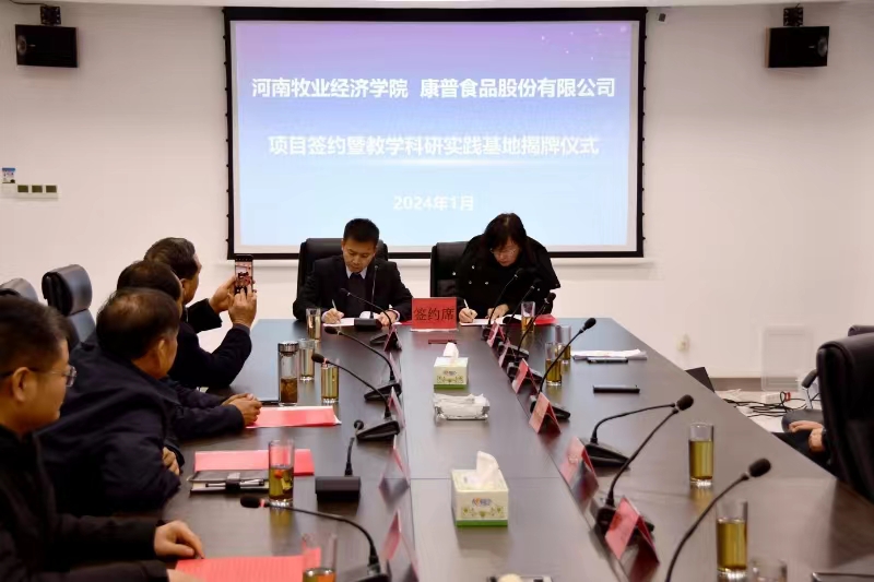 会上,科学技术处处长潘春梅、河南康普食品股份有限公司总经理刘迎宾代表双方进行签约。