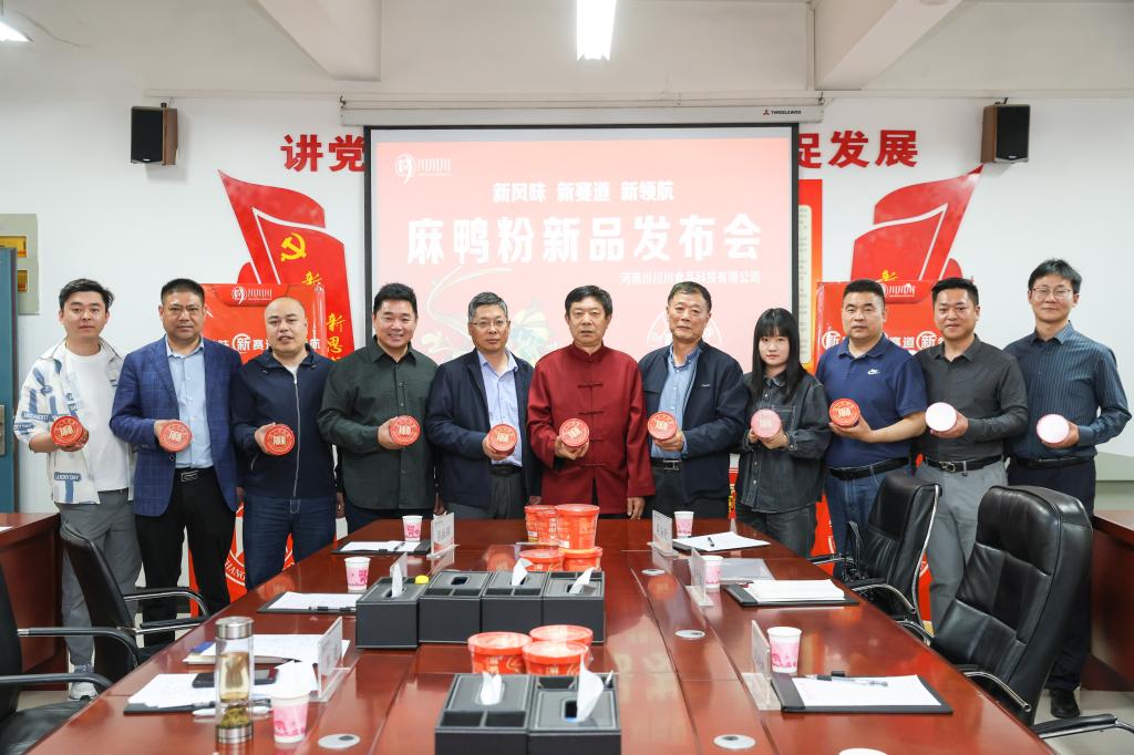 会后,与会领导一起见证了公司联合企业研发的速食新产品-麻鸭粉的产品发布。