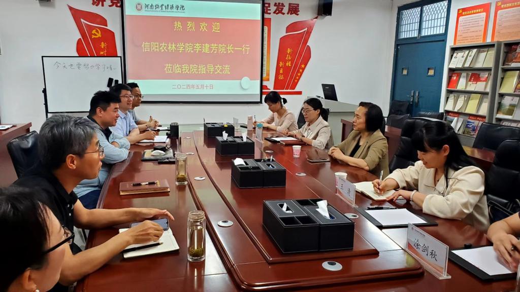 2024年5月10日,信阳农林公司食品科学与工程公司经理李建芳、副经理朱静、教研室主任王清和实验教学中心主任涂剑秋一行4人来best365足球官网考察交流。董事长尹新明教授、best365足球官网公司党委书记赵安勇、经理邹建热情接待了李经理一行。参加座谈的还有公司副经理郭宏伟、郑鸣,食品科学与工程教研室主任高雪琴、实践教学中心主任李长滨,经理邹建主持座谈会。
