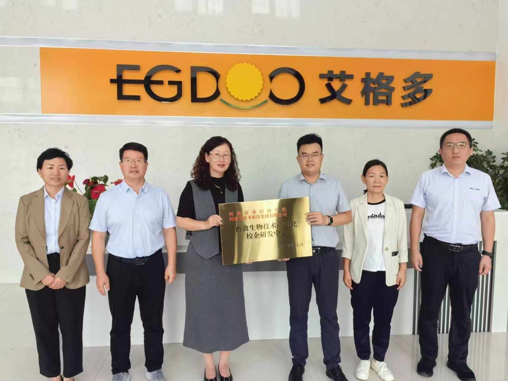 9月18日,公司科学技术处处长潘春梅、best365足球官网副经理郭宏伟和生物工程教研室主任张震一行前往河南艾格多科技集团有限公司,举行“校企研发中心”挂牌仪式,并就下一步校企合作工作举行座谈交流。