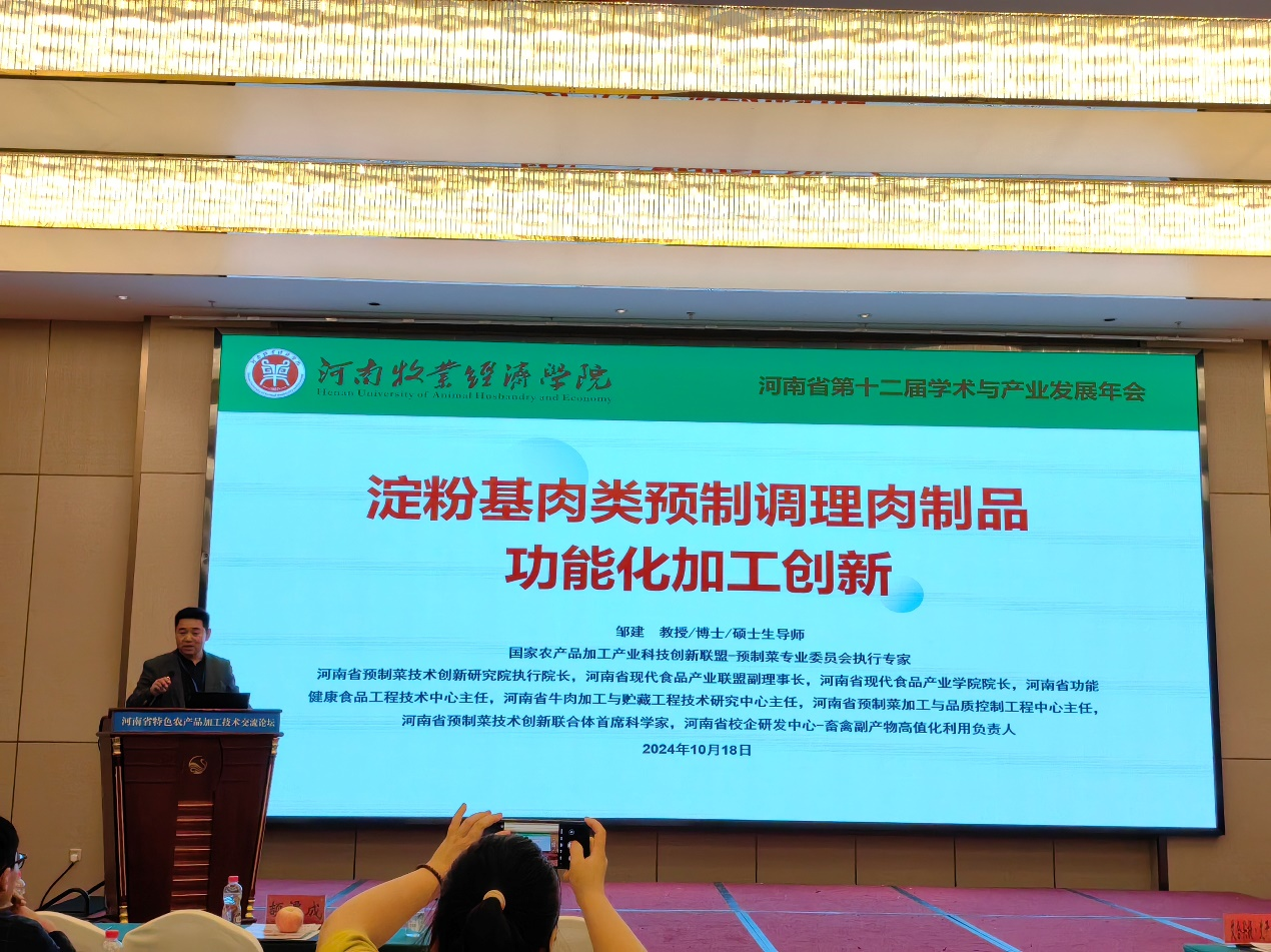 公司邹建教授应邀做了题为“淀粉基肉类预制调理肉制品功能化加工创新”的主旨报告,提出在淀粉基肉类预制调理产品中存在的问题,针对现存问题构建了功能化加工技术体系,并实现该体系在淀粉基肉类预制调理食品中的产业化应用。