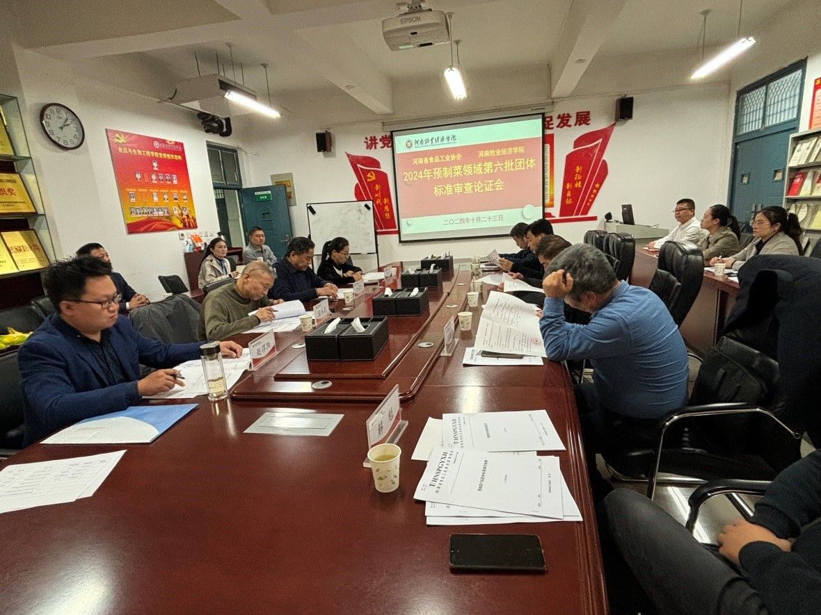 2024年10月23日,公司联合省食品工业协会组织专家对预制菜领域的4项团体标准进行审查、论证,河南省食品工业协会秘书长牛景红、中国食品工业协会副会长陈振杰、河南省预制菜标准委员会专家黄忠民、郝莉花、解魁、纵伟、王法云、张军民等参加了评审,公司科研办主任张煌、博士张凤娇、田丹丹,以及省食协赵得阳等参会,会议由牛景红主持。