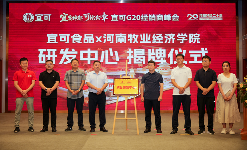 庆典会议上,张振辉博士与宜可食品厂厂长张善举代表双方签署协议;郭宏伟副经理与宜可食品董事长张守锋共同为“联合研发中心”揭牌。