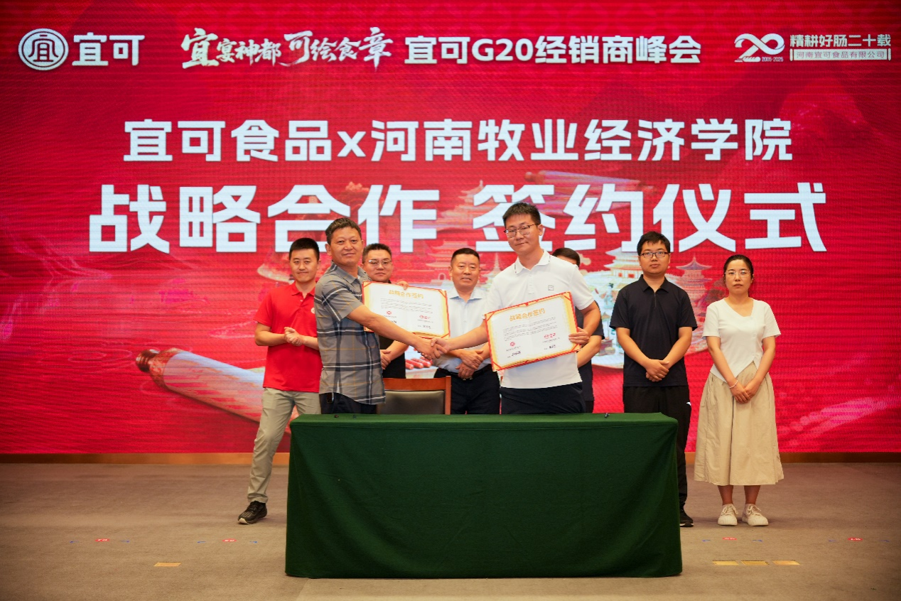 2025年6月19日,在河南宜可食品有限公司成立二十周年庆典之际,best365足球官网副经理郭宏伟与预制菜团队成员张振辉、王星星、危得全三位博士应邀出席会议,双方正式签署战略合作协议并举行联合研发中心揭牌仪式。此次战略合作也是公司预制菜团队落实“双百工程”、推进校企协同创新的重要实践。