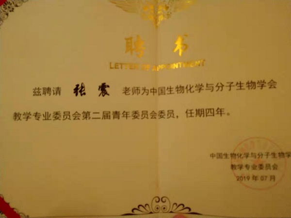 会议期间,进行了中国生物化学与分子生物学学会教学专业委员会青年委员会换届会议,张震博士被聘请为中国生物化学与分子生物学学会教学专业委员会第二届青年委员会委员。