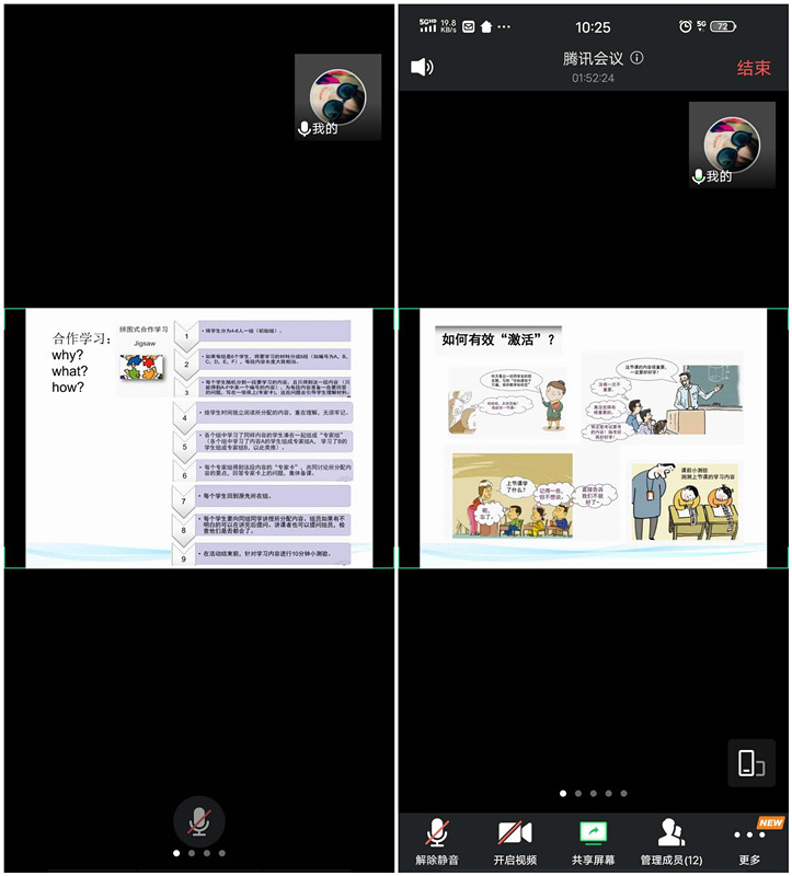 教研室老师文英会、王钊、辛婷、王璐、李靓、李兆棣、苏楠等各位老师也都结合自己课程的特点,谈到了疫情期间线上教学的心得,大家普遍认为要利用线上教学不受时空的限制,将课程资源进一步完善细化,并就如何进行课题环节的设计,如何将思政元素结合线上线下的特点更好的融入课程进行了讨论。