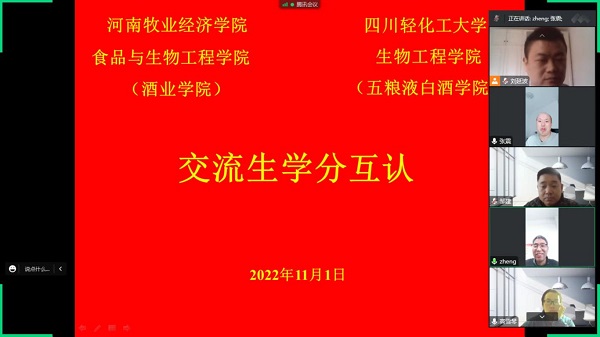 2022年11月1日中午,公司召开交流生学分互认工作线上会议。公司副经理(主持工作)邹建,副经理郑鸣,教学办主任刘延波,酿酒工程教研室主任赵志军,食品科学与工程教研室主任高雪琴和生物工程教研室主任张震参加,会议还特别邀请四川轻化工老员工物工程公司副经理李东。会议由郑经理主持。