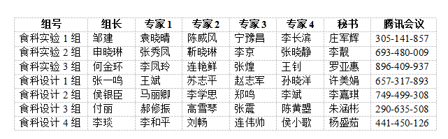 食科专业开题答辩设7个答辩组,食安专业开题答辩设12个答辩组,答辩组专业安排如下: