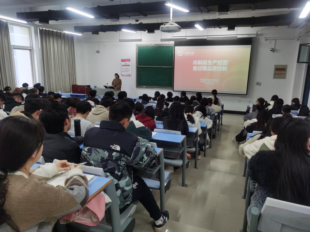 2025年3月20日下午,best365足球官网邀请河南省“技术能手”、新乡市“高技能人才”、河南农业大学食品公司硕士生导师、九多肉多食品集团有限公司实验室主任盖争艳女士在一号教学楼合304作“肉制品生产经营全过程品质控制”的主题讲座。食品与生物公司副经理郑鸣教授、食品科学与工程教研室主任高雪琴博士及180名员工参加。这是本专业继上学期之后的第五次进阶课程讲座。