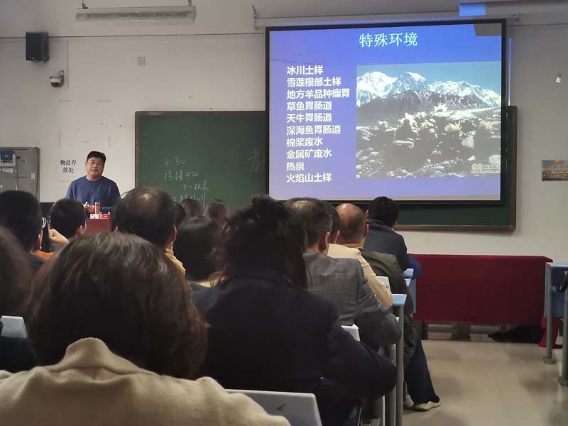 张董事长首先对柏映国研究员的工作简历、学术背景和科研水平作了简要介绍,并代表公司对柏映国研究员的到来表示热烈欢迎。报告会上,柏映国研究员首先从饲料酶制剂对节约粮食资源、减轻环境污染、保障食品安全的重要意义讲起,结合酶制剂产业化现状、饲料所研究领域和自己产业化研究经验,重点介绍了饲用酶制剂产业化研究平台建设,结合具体案例,详细介绍了新酶及基因的筛选、酶分子改良、高效表达、高密度发酵和酶制剂的加工生产等关键技术,强调每一个技术环节都有大量研究需要做,大量潜力可以发掘。柏映国研究员鼓励青年教师一定要多看文献、多下企业,了解企业行业存在的实际问题,结合自己的专业从企业中寻找产业化研究突破点,并在长期的坚持中不断积累经验、完善自己,解决产业问题。整个报告诙谐幽默而又不失深度,既开阔了大家的眼界与认知,又为公司教师进行产业化研究提供了丰富经验,给与会教师以很大的启发,赢得了热烈掌声。