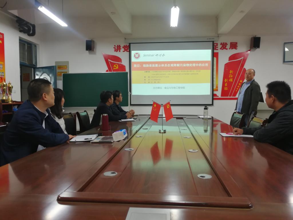 2019年11月15日下午2:30,在生工楼公司会议室举办了“细胞表面展示体系在难降解污染物处理中的应用”Seminar研讨会,研讨会由副经理邹建主持,张震博士主汇报了相关科研进展情况。