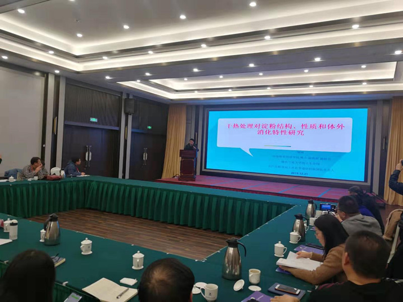 省农业农村厅对省内外77位农产品加工技术专家(公司张卫宪教授、杨宝进教授、刘太宇教授、边传周教授、郝修振教授、申晓琳教授和邹建副教授入选专家名单)进行隆重的聘书发放仪式;面粉及面制品加工、肉制品加工、油脂制品加工、乳制品加工、果蔬制品五大行业进行分组洽谈科技成果交流。在面粉及面制品加工分会场,邹建副教授以“干热处理对淀粉结构、性质和体外消化特性研究”为题进行了分会报告。