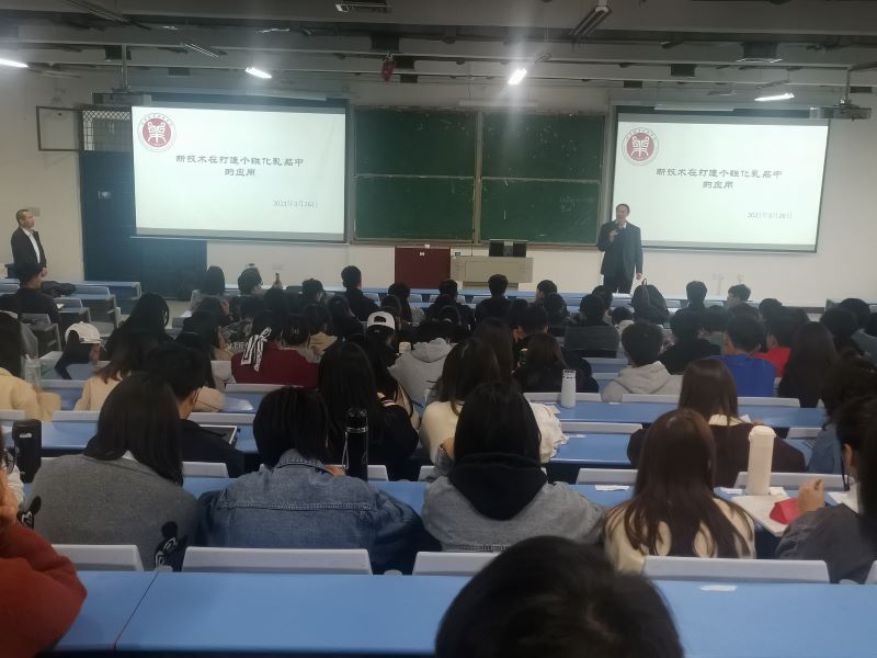 3月26日下午,公司Food-Bio Seminar系列活动、“大咖讲坛”第二场如期举行。公司乳品科研团队邀请的学术大咖、河南花花牛乳业有限公司研发部总经理、乳工程研究院总经理姜波莅临公司,在龙子湖校区1号教学楼合300作学术报告,报告主题为“新技术打造个性化乳制品”。报告会由副经理郝修振主持,公司全体专业教师和100多名员工参加了报告会。