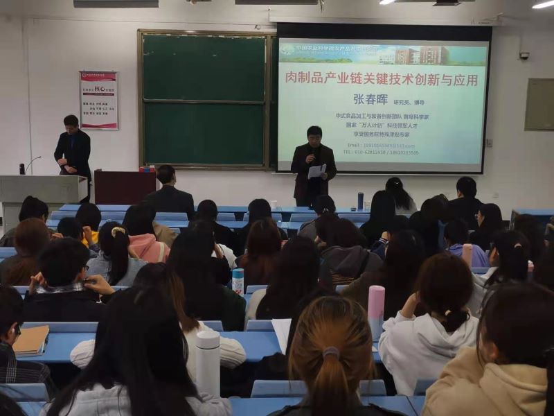 为了进一步加强公司科研团队建设,促进与知名院校及科研单位的学术交流,提升全体教师科研素养,拓宽相关专业员工的学术视野和科研思维。4月1日上午,公司如期举办Food-Bio Seminar系列活动、“大咖讲坛”第三场,由公司肉品科研团队邀请的学术大咖——中国农业科公司张春晖教授,在龙子湖校区1号教学楼合501作了题为“肉制品产业链关键技术创新与应用”的学术报告。报告会由副经理邹建主持,公司全体专业教师和100余名员工参加了报告会。