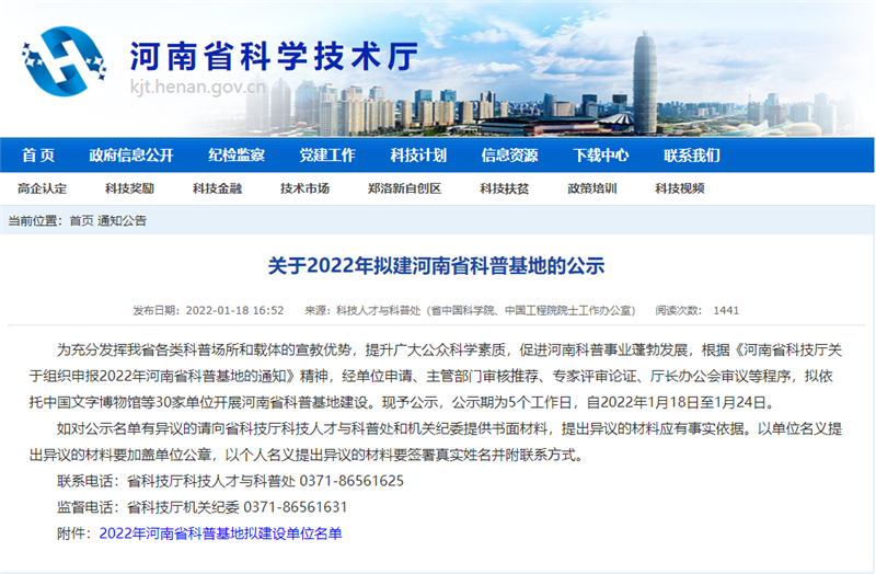 2022年1月18日,河南省科技厅公布了2022年拟建河南省科普基地名单,此次共有30家单位开展河南省科普基地建设,其中高校单位仅有8所,公司“食品科学与安全科普教育基地”成功入选。这是继豫酒文化馆之后公司又一省级科普基地。河南省科普基地项目旨在充分发挥我省各类科普场所和载体的宣教优势,提升广大公众科学素质,促进河南科普事业蓬勃发展。入选单位通过开展科普基地建设,可进一步为我省的科普教育事业做出贡献。