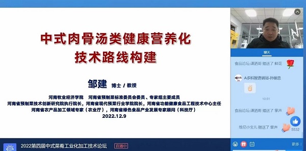 近日,由国家农产品加工产业科技创新联盟预制菜专业委员会和食品伙伴网主办的“第四届中式菜肴工业化加工技术论坛”以视频会议形式召开,来自全国各地从事预制菜行业的500余位企事业参会代表汇聚线上,共同探讨产业发展技术难题。公司best365足球官网邹建教授受邀参加并作主题报告。